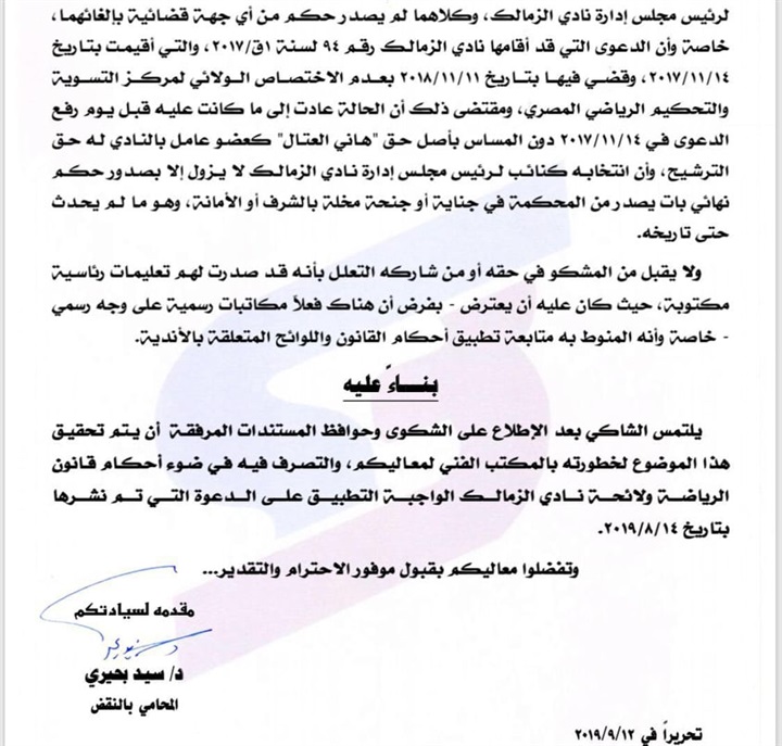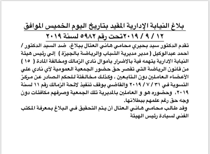 مستندات| محامي العتال يتقدم ببلاغ ضد مدير مديرية الشباب والرياضة بالجيزة