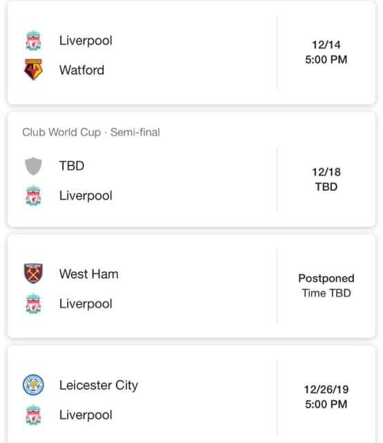 ويتواجد ليفربول ليفربول في صدارة جدول ترتيب الدوري الإنجليزي برصيد 18 نقطة.
