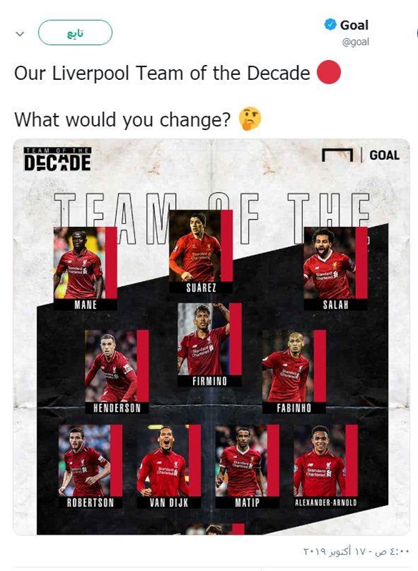 وجاءت التشكيلة المثالية لفريق ليفربول كالتالي: