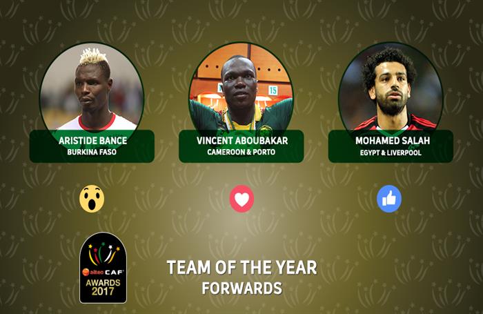 ويتنافس صلاح مع لاعب المصري بوركينا فاسو أرتيستد بانسيه والكاميروني فينسنت أبوبكر لاعب بورتو البرتغالي.