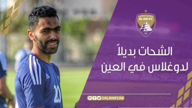 وكتب نادى العين عبر صفحته الرسمية بموقع التواصل الاجتماعي "تويتر"، "حسين الشحات بديلاً لدوجلاس فى العين".