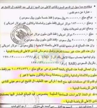 وأضاف محمد عثمان: " بالفعل تم تحويل مبلغ من حساب تركى آل الشيخ إلي عبدالله السعيد لاعب الأهلي السابق بشكل مباشر للاعب والنادي ليس لهه علاقة بذلك.. حيث لم يتم احاطة النادي بذلك الأمر واللاعب لم يتحدث إلى المسئولين عن المبلغ الذي تقاضاه وهل هو ترضية ام هدية وهو كرئيس شرفي للنادي فعل ذلك التحويل ولم تدخل خزينة النادي ولا تحسب كتبرع وهذا ينطبق على أحمد فتحي.