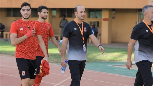 عقد الجنوب إفريقي بيتسو موسيماني مدرب النادي الأهلي، جلسة مع ثلاثي الدفاع بدر بانون وياسر إبراهيم وأيمن أشرف على هامش مران الفريق على ملعب التتش بالجزيرة منك قليل.