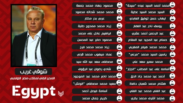 وقال غريب انه حريص علي منح الفرصه لجميع اللاعبين في مختلف الانديه قبل الاستقرار علي الهيكل الأساسي الذي سيتم الاعتماد عليه مشيرا الي ان الجهاز الفني تابع جميع المسابقات التي تضم عناصر المنتخب الأولمبي سواء في الدوري الممتاز او القسم الثاني او بطولة الجمهوريه لمواليد 2001 .وكذلك الحرص على استمرار جميع المسابقات دون توقف
