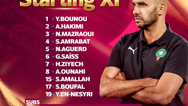 وفيما يلي التشكيل الرسمي لمنتخب المغرب لمواجهة إسبانيا