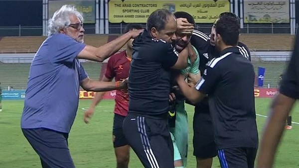 الشناوي الخروج قبل المهاجم من أجل الاستحواذ على الكرة.