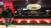 شاهد| حسين الشحات يلتقط صورة تذكارية مع بطولات الأهلي