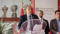الخطيب يُهدي درع وقميص الأهلي لرئيس الجامعة الأمريكية