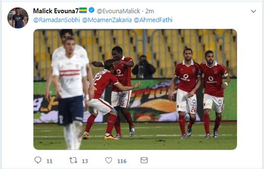فيما نشر صورة آخرى من مباراة القمة بين الأهلي والزمالك مشيرًا لكل من مؤمن زكريا ورمضان صبحي وأحمد فتحي، مكتفيًا بوضع رموز الإعجاب عبر حسابه على "تويتر"