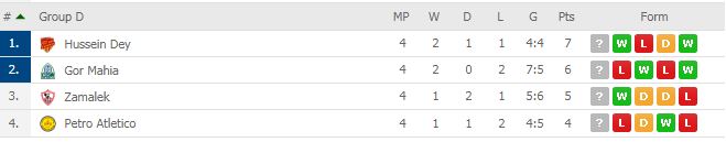 ويحتل الفريق الأبيض المركز الثالث برصيد 5 نقاط بالمجموعة الرابعة التى يحتل صدارتها فريق نصر حسين داى برصيد 7 نقاط بعد فوزه على جورماهيا الذى تراجع للمركز الثانى برصيد 6 نقاط، فيما يأتى بترو أتلتيكو الأنجولى فى المركز الرابع والأخير برصيد 4 نقاط.