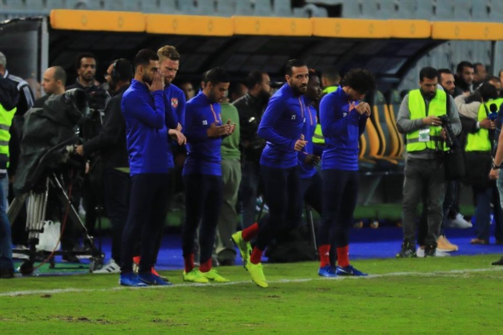 وخاض الأهلي عمليات الإحماء بقراءة الفاتحة قبل النزول لملعب المباراة، قبل أن يؤدوا بعض التدريبات.