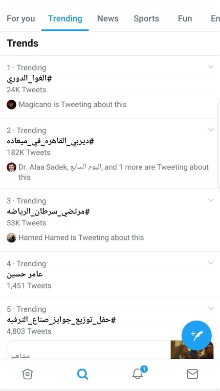 تصدر هاشتاج "الغو الدوري" موقع التواصل الإجتماعي تويتر، عقب قرار اللجنة المؤقتة لادارة اتحاد كرة القدم بتأجيل مباراة الأهلي والزمالك في الجولة الرابعة لبطولة الدوري الممتاز والتي كان المقرر لها مساء السبت المقبل.
