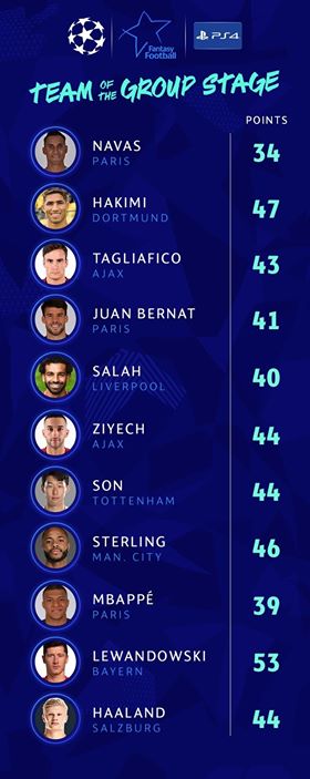 أعلن الاتحاد الأوروبي لكرة القدم "اليويفا"، التشكيل المثالي لدور المجموعات لبطولة دوري أبطال أوروبا.