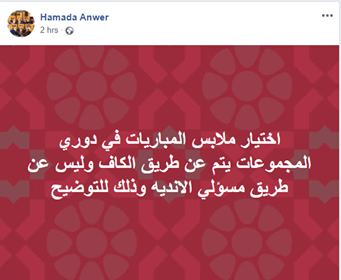 "اختيار ملابس المباريات في دوري المجموعات يتم عن طريق الكاف وليس عن طريق مسؤلي الانديه وذلك للتوضيح".