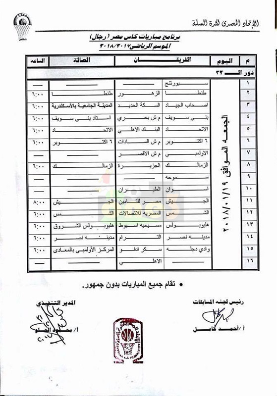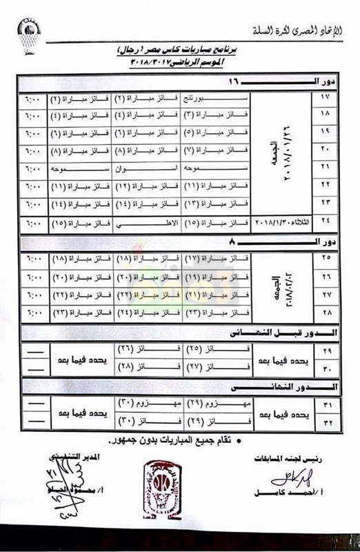أعلنت لجنة المسابقات باتحاد كرة السلة، برئاسة أحمد كامل، جدول لقاءات بطولة كأس مصر للرجال، عن الموسم الحالي 2017 - 2018.