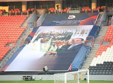 ظهرت صورة الرئيس المصري عبد الفتاح السيسي، ومحمد بن زايد رئيس الإمارات، في مدرجات ملعب زايد في الإمارات، خلال مباراة الأهلي والزمالك في السوبر المصري.