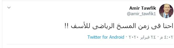 وقال امير توفيق عبر حسابه على تويتر: «لقد أصبحنا في زمن المسخ الرياضي».