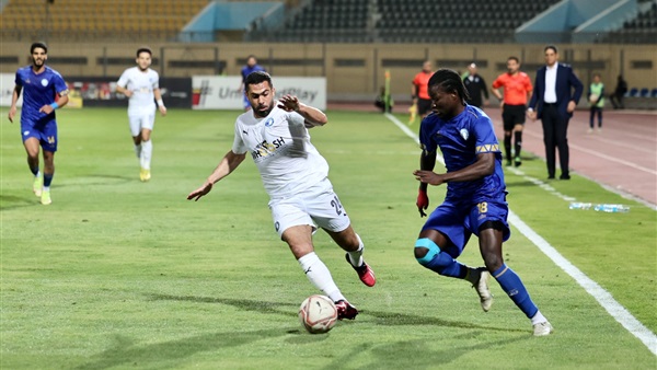 شهد الشوط الأول بين النادي الأهلي ونادي بيراميدز، لقطة مهارية من جانب أحمد القندوسي لاعب وسط الأهلي مع أحمد توفيق لاعب بيراميدز.