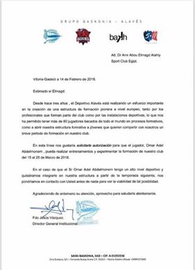 ينشر لكم موقع وأن ثري المستند الرسمي الذي أرسله نادي ألافيس الإسباني، لطلب معايشة عمر عادل عبد المنعم حارس فريق مواليد ٢٠٠٢ بالأهلي، شقيق أحمد عادل حارس مرمى الأحمر السابق، لمدة ١٠ أيام في الفترة من ١٥ حتى ٢٥ مارس المقبل.