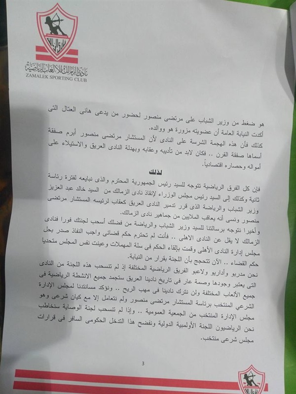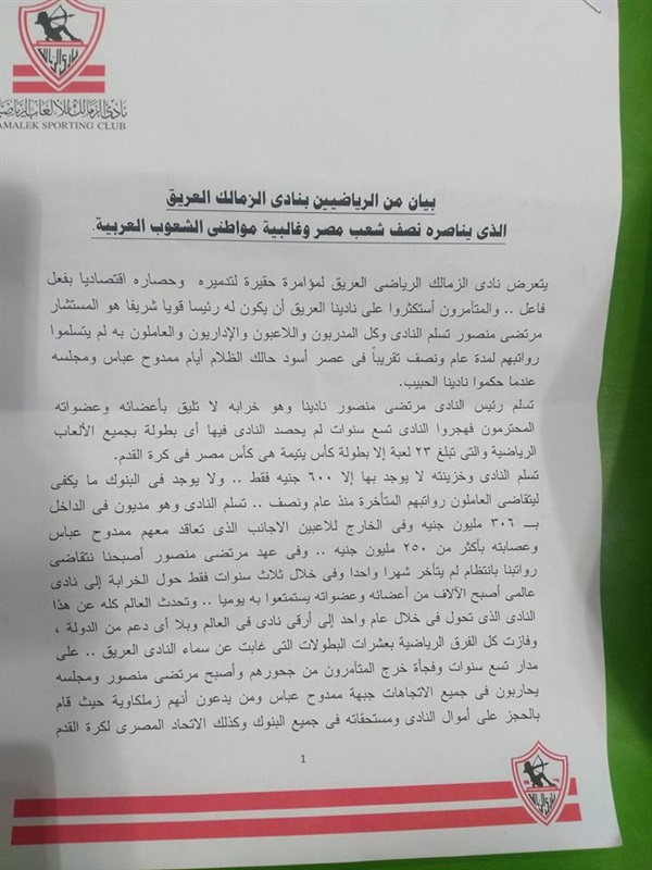 صور..بيان مدربو الالعاب الفردية والجماعية بالزمالك لرحيل لجنة الوزير