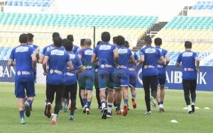 وعقب المحاضرة، تجمّع اللاعبون في وسط الملعب، وقرؤوا الفاتحة، ثم خاض الفريق تدريبات بدنية، تحت قيادة أنيس الشعلالي المعد البدني.