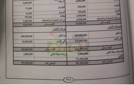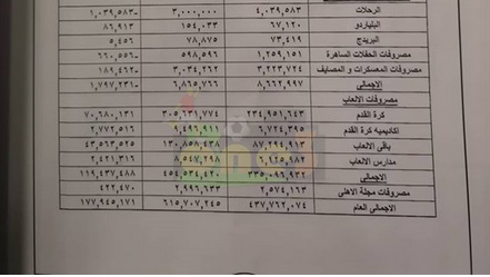 وكشفت ميزانية النادي أن مصروفات فريق كرة القدم وصلت لـ450 مليون جنية، فيما جاءت الإيرادات 400 مليون بخسارة 50 مليون.