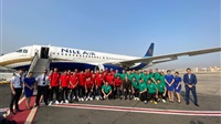 استقبال بالورود لبعثة السباحة بالزعانف بعد التتويج ببطولة العالم للمياه المفتوحة بصربيا