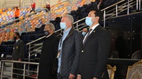 في مباراة مصر ومقدونيا..وزير الرياضة ورئيس الاتحاد الدولي لليد في المقصورة الرئيسية بالصالة المغطاة بإستاد القاهرة